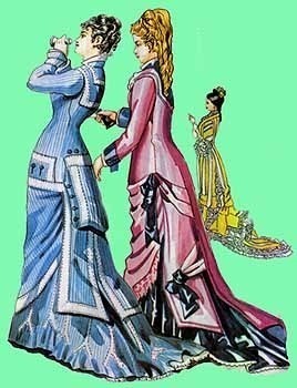 отделаны каймой. Юбка имеет "задник", разворачивающийся в короткий